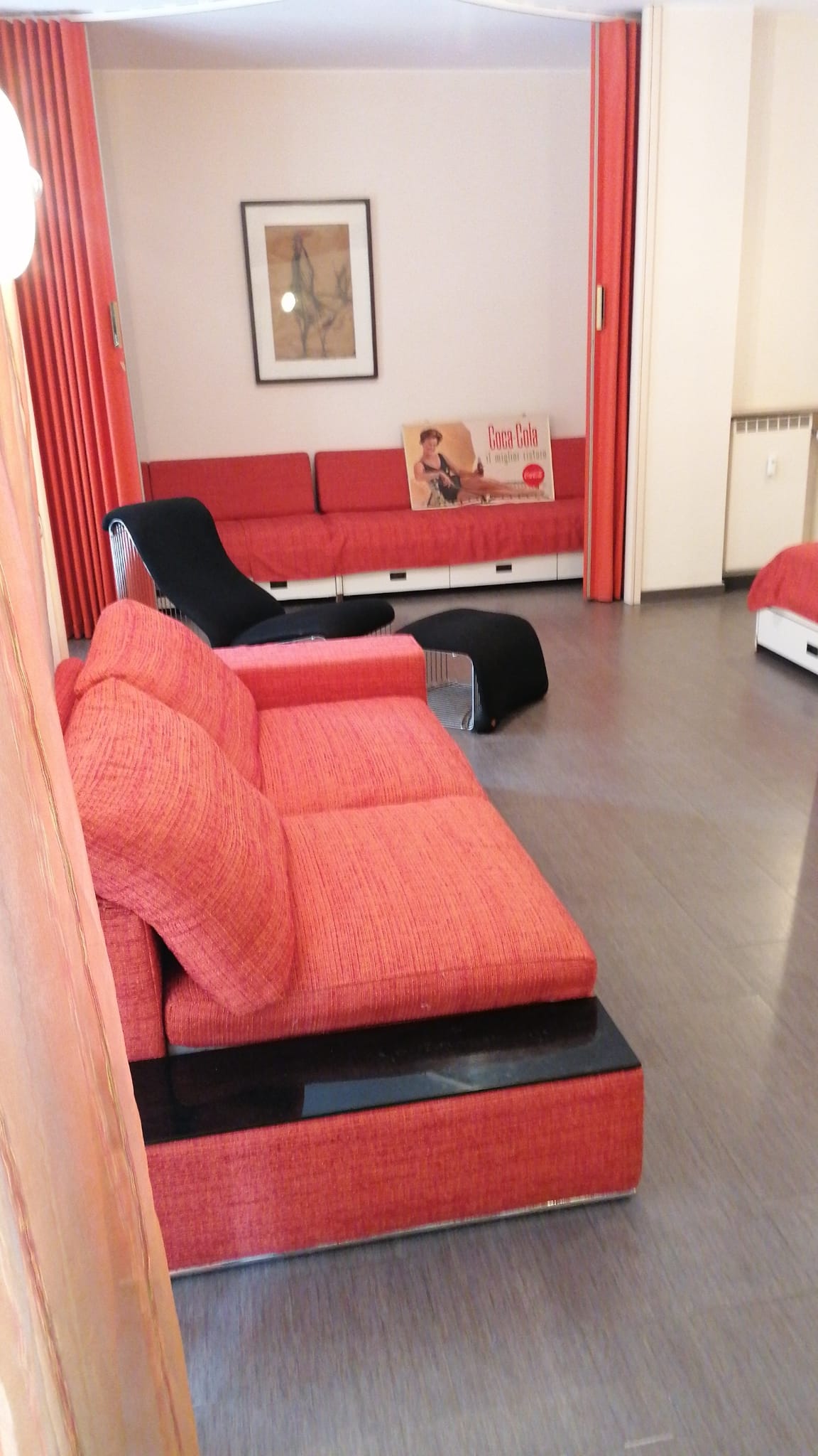 Comodo alle spiagge e a tutti i servizi in palazzina signorile loft 61 mq + giardino privato stile Space Age (anni ’60-’70)evoca atmosfere futuristiche e lunari, caratterizzato da forme sferiche, materiali plastici innovativi e colori vivaci come arancione, cantina